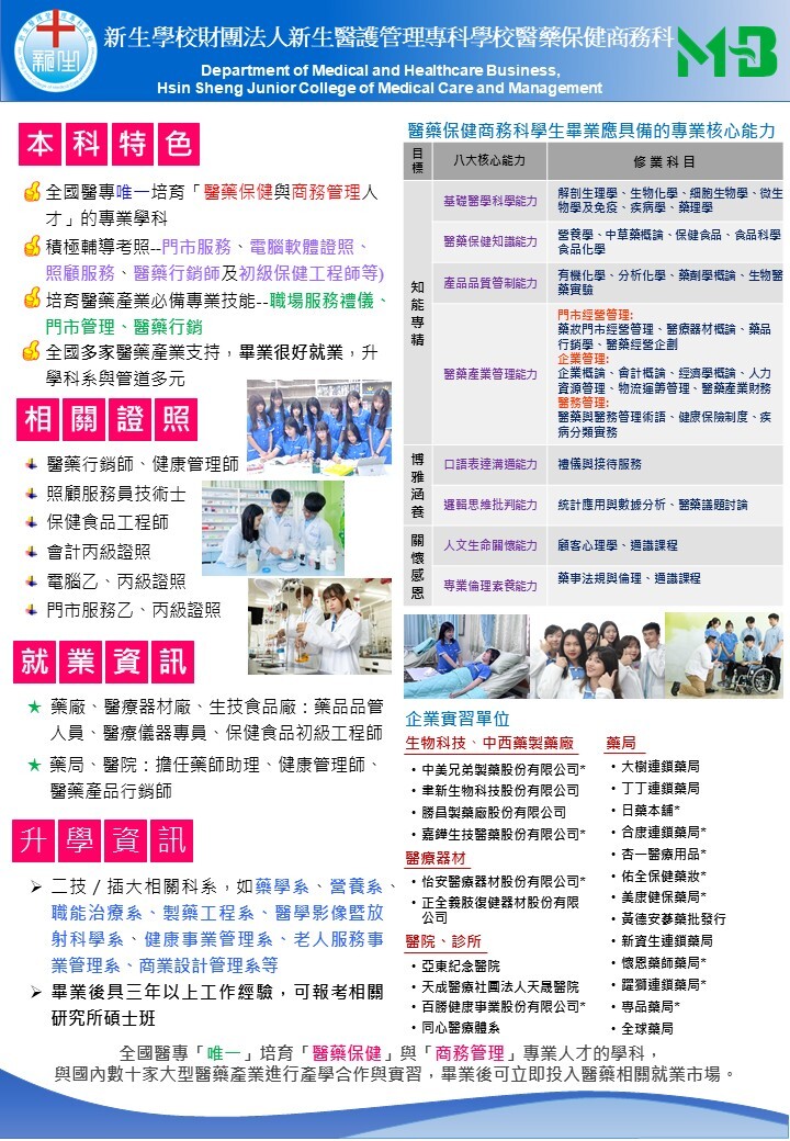 醫藥保健商務科 入學諮詢電話03-4117578 分機647、296