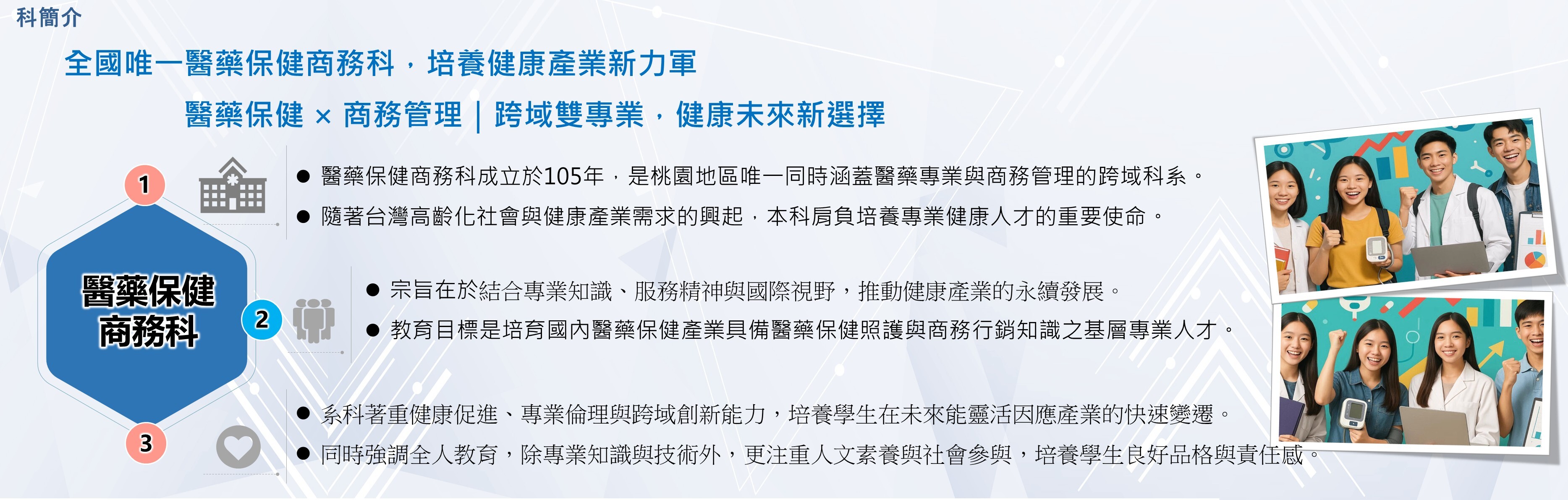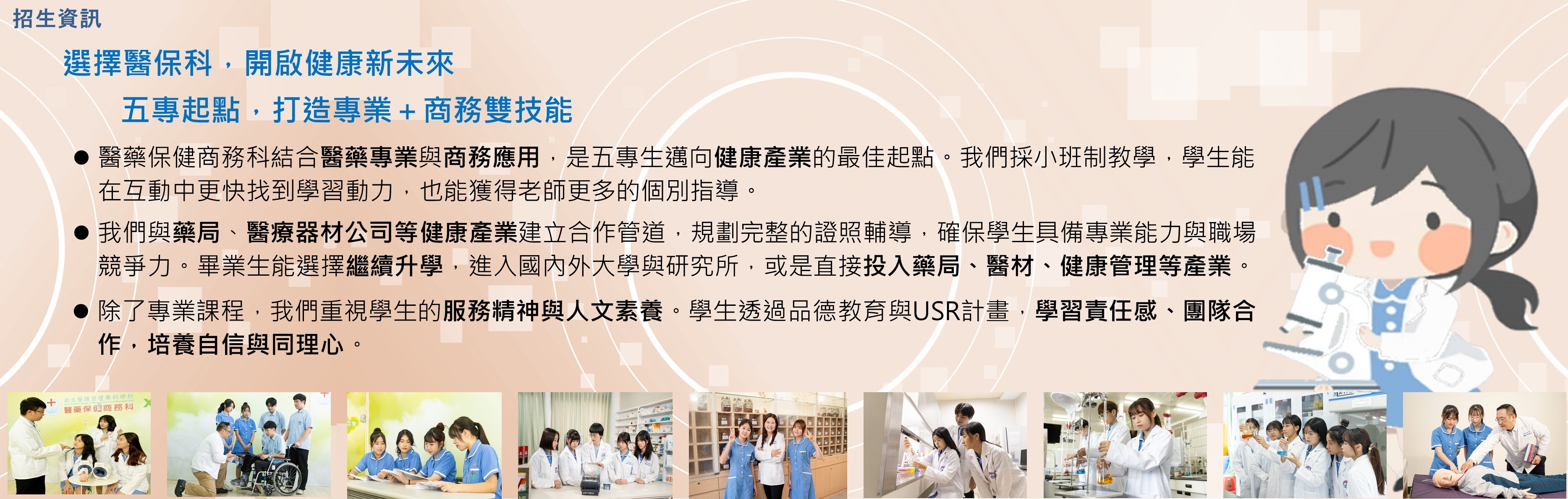 醫藥保健商務科 入學諮詢電話03-4117578 分機647、296
